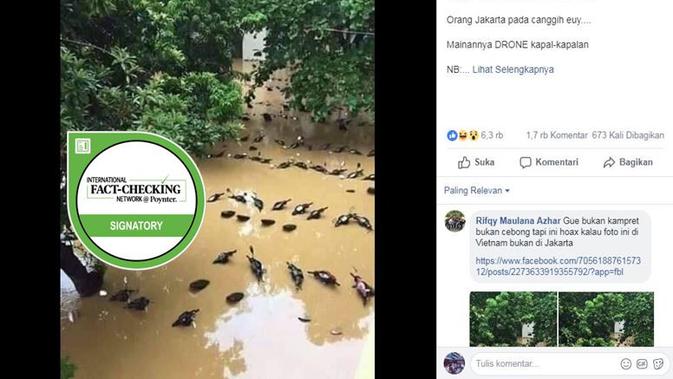 Gambar ini diunggah oleh akun facebook Katakita. Setelah diunggah pada 6 Maret 2019 lalu, kabar ini jadi viral di media sosial. Dalam unggahannya, akun ini juga menambahkan narasi yang menyebut bahwa banjir tengah melanda Ibukota.