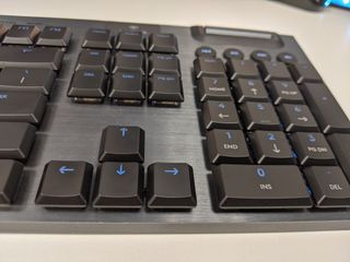 Logitech's GL switches have an actuation distance of 1.5mm, a total travel distance of 2.7mm, and an actuation force of 50g to register a key press. Compare that to Razer's proprietary switches, which range between 45-50g of force and 3.5mm-4mm of travel, and you get an idea of what exactly 'low profile' means in this context. The keys aren't set so low that they resemble an Apple keyboard and require the same amount of force, but with that shorter travel distance they're notably zippier in their behaviour than other mechanical boards.