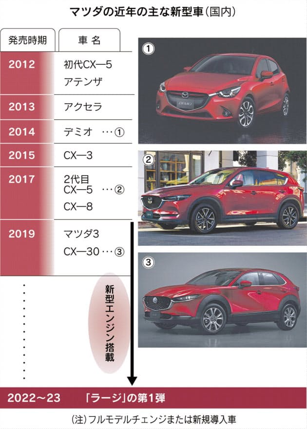 マツダ、「新車の空白期」 新型エンジン車の浸透急務 - 日本経済新聞