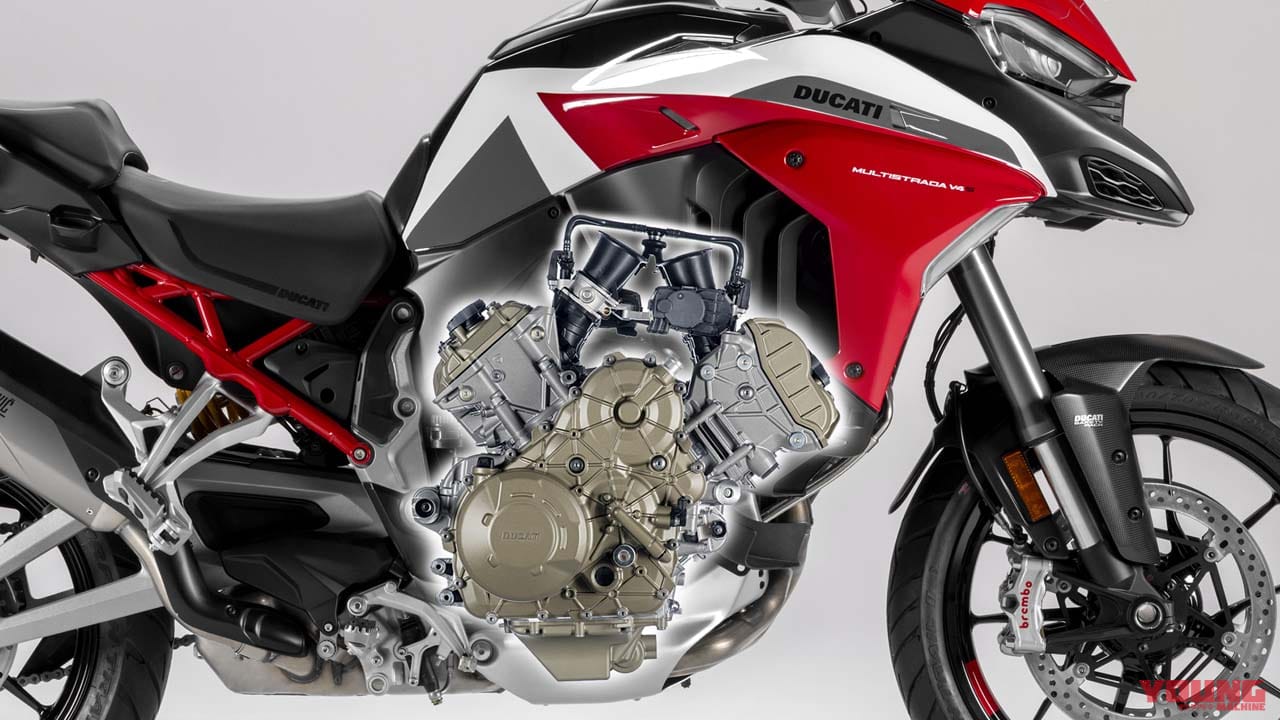ドゥカティが2021年モデルとして発売する「ムルティストラーダV4S」シリーズは、パニガーレV4パニガ/ストリートファイターV4に次いでV4エンジンを搭載したアドベンチャーマシン。この新エンジンを採用したのには、ある目的があった。