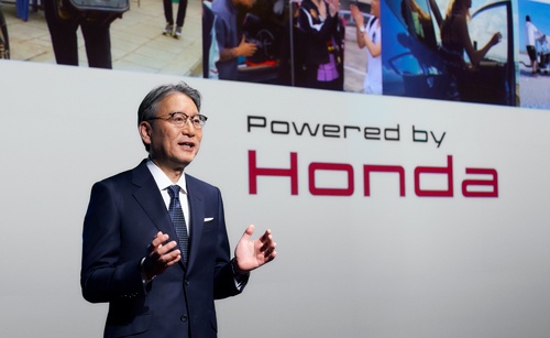 2021年4月にホンダ社長に就任した三部敏宏氏の会見の様子(写真:ホンダ)