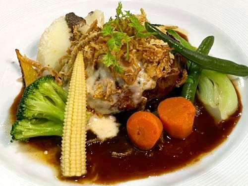 メインディッシュのハンバーグは980円。むしろ価格的にはそう期待はできない。それにコースセット(オードブル、スープ、ライスかパン、コーヒーか紅茶)を付けるとプラス1200円(ディナータイム)。メニューだけ見たときにはコースセットが少々高く感じたが、後に料理が運ばれてきてから驚くことになる。