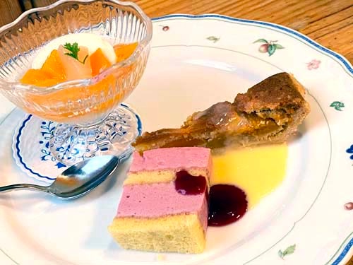 メインに十分満足して、さてデザートだなと思っていると、これがまた超弩級。この盛り合わせ3点のうちどれかひとつでもまったく文句は言わない。それがコレである。もちろん量で浴びせ倒す系ではなく、どれもしっかり美味い。あわせて、ホットコーヒーをチョイスした。