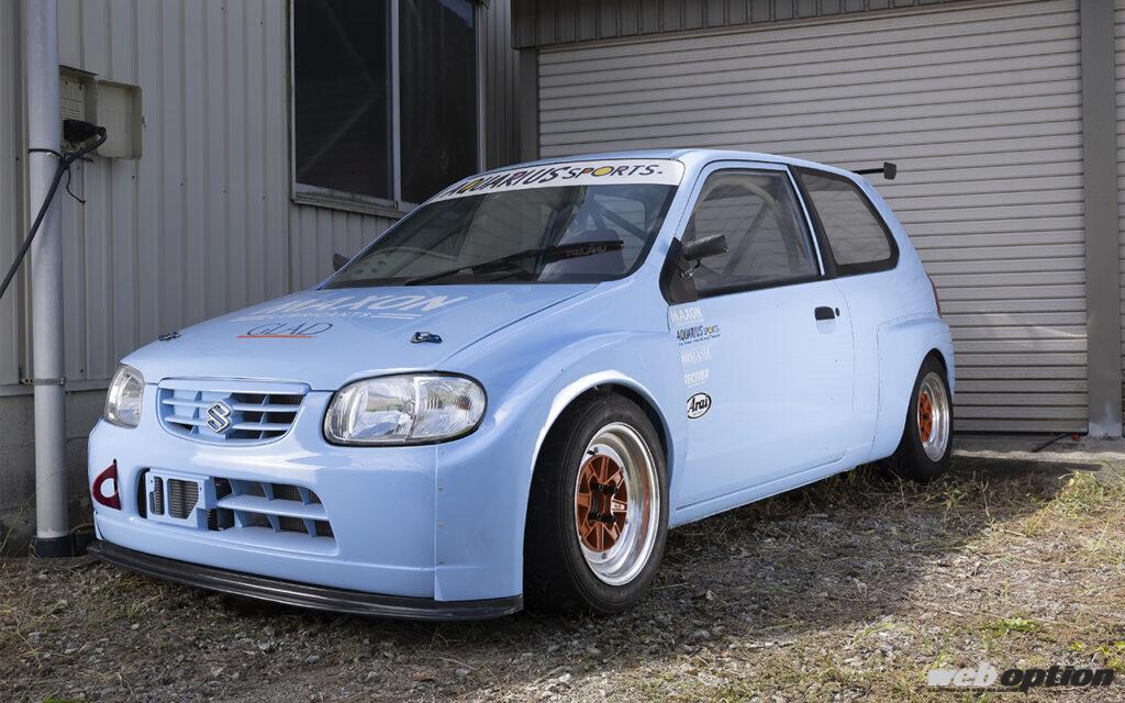 そんな男の自宅には、JBエンジンをスワップしたダイハツ660各車がずらりと並ぶ。手前のL700型ミラは、ドリフト仕様として現在製作中の個体。その奥に佇むウォークスルーバンは、奥様のお父さんが農業で使用するために購入した車両なのだが、うっかりJB-DETを換装してしまったそう。ここまでくると、もはや中毒である。