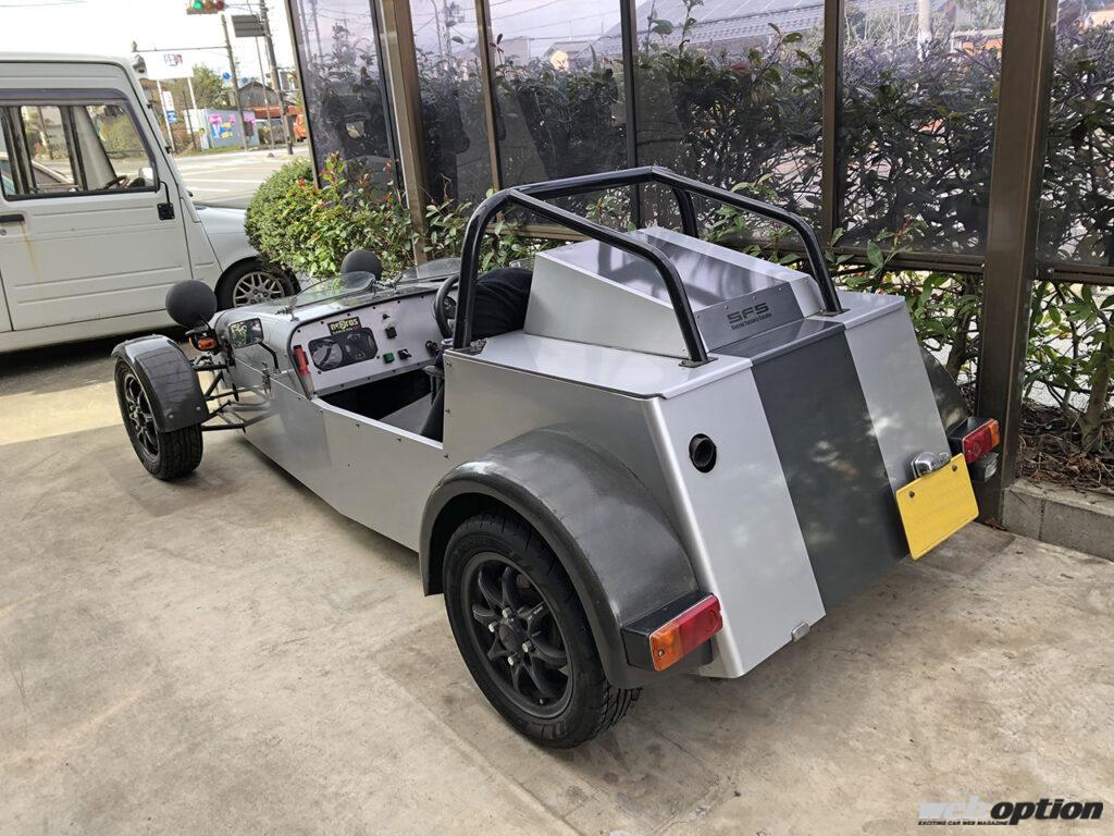 これまで多くの想定外ドリフト軽自動車を製造してきた左武さんだが、その中で最もスケールの大きな作品がスーパー7をオマージュしたオリジナルマシンだ。